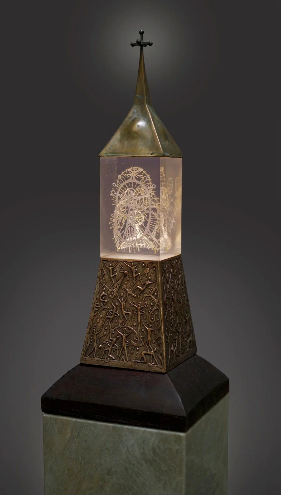 So I only got into sculpture after the 1999 revolution, when I started returning from America to visit my parents in Slovakia every summer. My father already had his own foundry for casting bronze in his sculpture garden, which I really liked. And so I started making bronze sculptures, which I later started combining with resin and light.